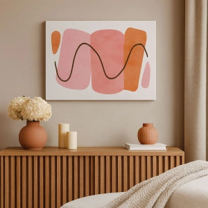 Cuadro sobre lienzo - Impresión de Imagen - Formas abstractas en tonos rosa y naranja. - 50x70cm - Suave movimiento de formas - Decoración de pared moderna para salón y dormitorio ARTTOR