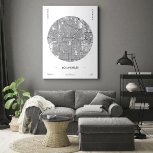 Cuadro sobre lienzo - Impresión de Imagen - Un mapa de Los Ángeles en un estilo minimalista en blanco y negro. - 50x70cm - Anatomía de Los Ángeles - Decoración de pared moderna para salón y dormitorio ARTTOR