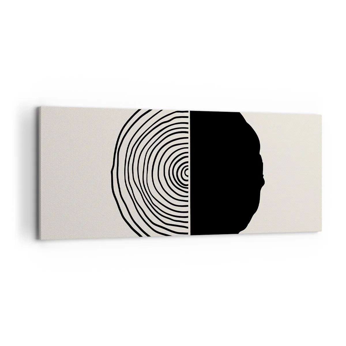 Cuadro sobre lienzo - Impresión de Imagen - Un motivo abstracto en blanco y negro inspirado en una sección transversal de madera con una división geométrica. - 120x50cm - Mitad y mitad - Decoración de pared moderna para salón y dormitorio ARTTOR