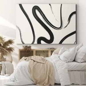 El cuadro "Capricho en blanco y negro" es una obra de arte minimalista que destaca por su simplicidad y claridad. Sus dinámicas líneas en blanco y negro sobre fondo claro crean una composición armoniosa que atrae la mirada y aporta un carácter moderno al interior. Las curvas geométricas aportan dinamismo y elegancia a la obra, convirtiéndola en una opción ideal para los amantes del arte contemporáneo.