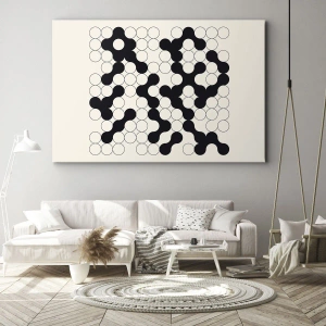 Cuadro sobre lienzo - Impresión de Imagen - Patrones en blanco y negro con círculos sobre un fondo claro. - 120x80cm - Juego chino - una variación - Decoración de pared moderna para salón y dormitorio ARTTOR