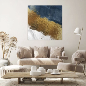 Cuadro sobre lienzo - Impresión de Imagen - Una composición abstracta en tonos dorados, azules y blancos. - 100x70cm - Los colores del verano - Decoración de pared moderna para salón y dormitorio ARTTOR