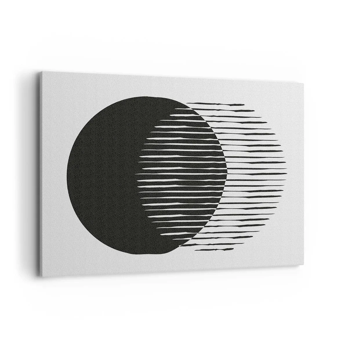 Cuadro sobre lienzo - Impresión de Imagen - Dos círculos superpuestos con líneas blancas y negras. - 100x70cm - Su alter ego - Decoración de pared moderna para salón y dormitorio ARTTOR
