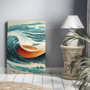 Cuadro sobre lienzo - Impresión de Imagen - Olas marinas dinámicas con cinta abstracta - 70x100cm - El sueño de un surfista - Decoración de pared moderna para salón y dormitorio ARTTOR