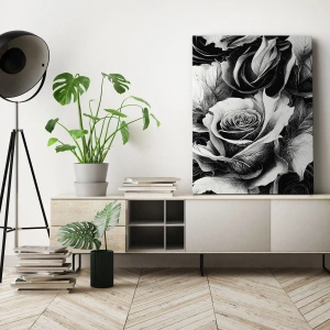 Cuadro sobre lienzo - Impresión de Imagen - Rosas blancas y negras en una elegante composición. - 120x50cm - Siempre como una reina - Decoración de pared moderna para salón y dormitorio ARTTOR