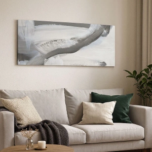 El lienzo "Movimiento Decisivo" es una abstracción moderna que combina tonos de gris y blanco en una composición dinámica y artística. Sus líneas expresivas y sutiles transiciones de color le confieren un carácter único que se adapta a la perfección a interiores elegantes.