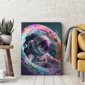 Cuadro sobre lienzo - Impresión de Imagen - Astronauta en un aura cósmica colorida - 120x80cm - Puerta estelar - Decoración de pared moderna para salón y dormitorio ARTTOR