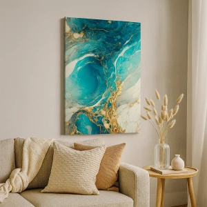 Cuadro sobre lienzo - Impresión de Imagen - Una composición abstracta en tonos turquesa y dorado. - 70x100cm - Composición con vetas de oro - Decoración de pared moderna para salón y dormitorio ARTTOR