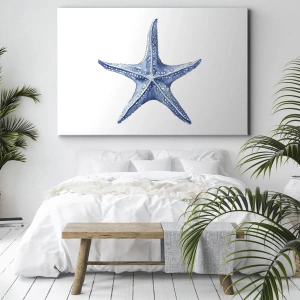 Cuadro sobre lienzo - Impresión de Imagen - Estrella de mar azul sobre fondo blanco en estilo minimalista. - 120x80cm - Estrella de mar - Decoración de pared moderna para salón y dormitorio ARTTOR