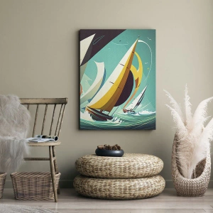 Cuadro sobre lienzo - Impresión de Imagen - Una ilustración dinámica de veleros en un mar tempestuoso. - 120x80cm - Afrontar los elementos - Decoración de pared moderna para salón y dormitorio ARTTOR