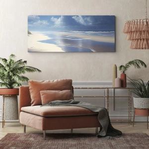 Cuadro sobre lienzo - Impresión de Imagen - Una playa de arena con olas bajo un cielo azul. - 50x70cm - Vacaciones en el paraíso - Decoración de pared moderna para salón y dormitorio ARTTOR