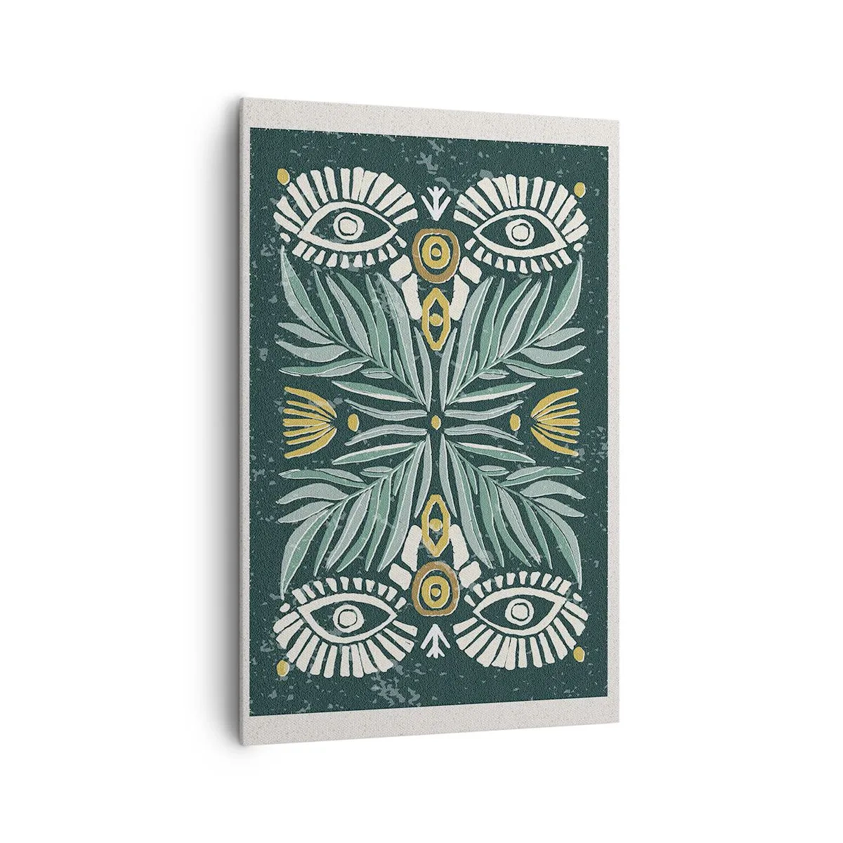 Cuadro sobre lienzo - Impresión de Imagen - Patrón de planta simétrica sobre un fondo verde. - 80x120cm - Como un recorte folclórico - Decoración de pared moderna para salón y dormitorio ARTTOR