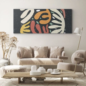 Cuadro sobre lienzo - Impresión de Imagen - Formas abstractas en colores cálidos sobre un fondo oscuro. - 50x70cm - Composición - Estoy a punto de atraparte - Decoración de pared moderna para salón y dormitorio ARTTOR