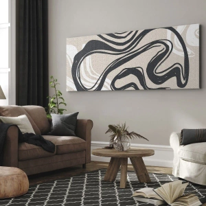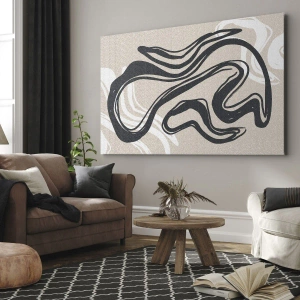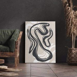 Cuadro sobre lienzo - Impresión de Imagen - Líneas abstractas en tonos oscuros sobre un fondo beige. - 50x70cm - Expresión multiplicada - Decoración de pared moderna para salón y dormitorio ARTTOR