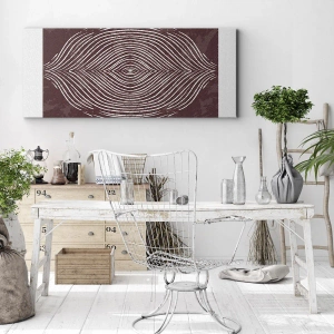 Cuadro sobre lienzo - Impresión de Imagen - Ondas simétricas en líneas blancas sobre un fondo marrón - 140x50cm - El espacio habla - Decoración de pared moderna para salón y dormitorio ARTTOR