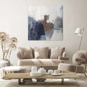 Cuadro sobre lienzo - Impresión de Imagen - Formas abstractas en tonos azules y marrones. - 50x70cm - Formas azules y marrones - Decoración de pared moderna para salón y dormitorio ARTTOR