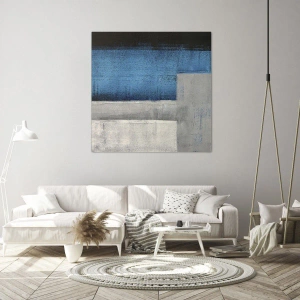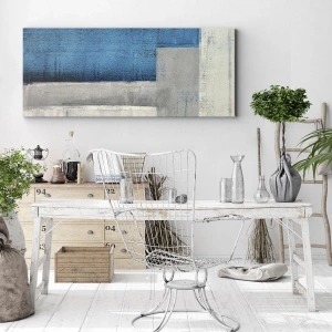 Cuadro sobre lienzo - Impresión de Imagen - Una composición abstracta con tonos de azul, gris y blanco. - 160x50cm - Composición poética de gris y azul - Decoración de pared moderna para salón y dormitorio ARTTOR
