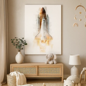 - Un lienzo que representa un transbordador espacial despegando en una artística interpretación en acuarela. Un detalle decorativo perfecto para amantes del espacio y para interiores modernos.