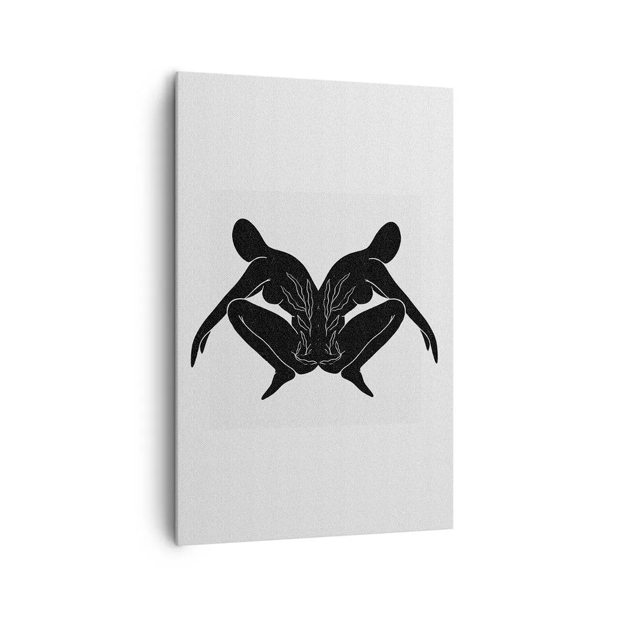 Cuadro sobre lienzo - Impresión de Imagen - Siluetas negras en posición simétrica sobre un fondo blanco. - 80x120cm - Un alma compartida - Decoración de pared moderna para salón y dormitorio ARTTOR