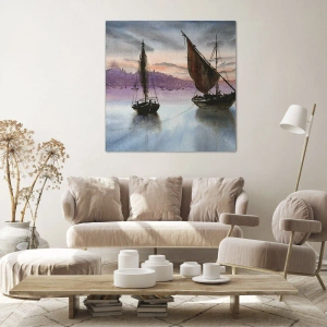 Cuadro sobre lienzo - Impresión de Imagen - Dos veleros amarrados en aguas tranquilas al anochecer - 50x70cm - Atardecer en el puerto - Decoración de pared moderna para salón y dormitorio ARTTOR