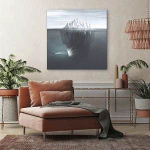 Cuadro sobre lienzo - Impresión de Imagen - Un iceberg en el agua con un buzo y un reflector debajo de la superficie. - 140x50cm - Misterio submarino - Decoración de pared moderna para salón y dormitorio ARTTOR