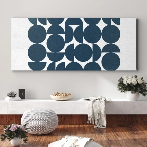 Cuadro sobre lienzo - Impresión de Imagen - Formas geométricas en tonos azul marino sobre fondo blanco. - 100x70cm - Círculos y semicírculos - Decoración de pared moderna para salón y dormitorio ARTTOR