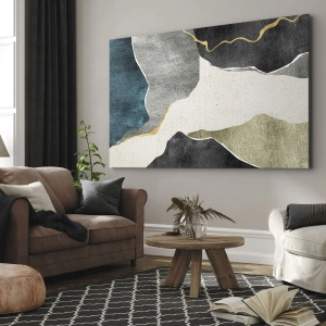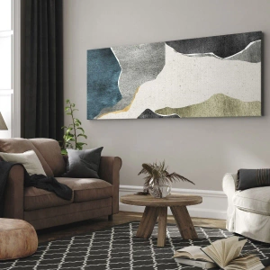 Cuadro sobre lienzo - Impresión de Imagen - Formas geométricas en tonos grises, verdes y dorados. - 120x50cm - Composición en mosaico con una hebra de oro - Decoración de pared moderna para salón y dormitorio ARTTOR