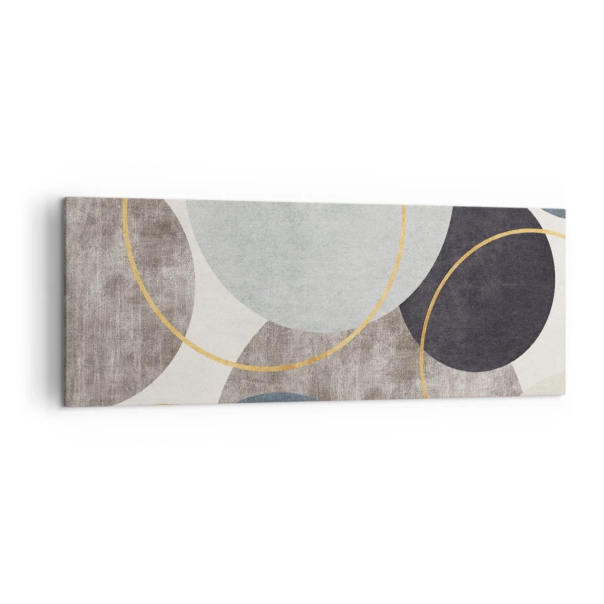Cuadro sobre lienzo - Impresión de Imagen - Círculos geométricos en tonos grises, azules y dorados. - 140x50cm - Círculo tras círculo - Decoración de pared moderna para salón y dormitorio ARTTOR
