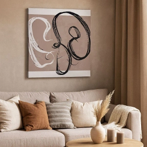 - Una pintura artística que presenta una abstracción en blanco y negro sobre un fondo beige. Un motivo minimalista y elegante, perfecto para interiores modernos y con estilo.