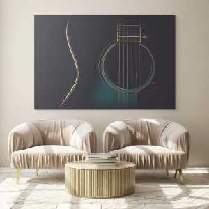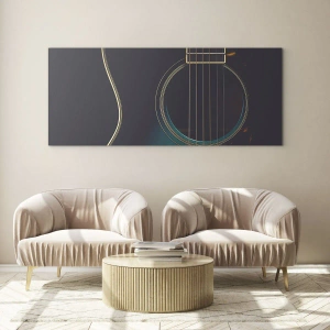 Cuadro sobre vidrio - Impresiones sobre Vidrio - Guitarra acústica en luz oscura y elegante. - 120x50cm - Un momento antes de que suene - Decoración de pared moderna para salón y dormitorio ARTTOR