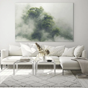 Cuadro sobre vidrio - Impresiones sobre Vidrio - Árboles del bosque tropical que emergen de la espesa niebla - 120x80cm - Envuelto en niebla - Decoración de pared moderna para salón y dormitorio ARTTOR