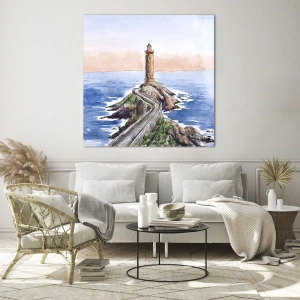 Cuadro sobre vidrio - Impresiones sobre Vidrio - Un faro en una costa rocosa - 70x100cm - Frente al mar - Decoración de pared moderna para salón y dormitorio ARTTOR