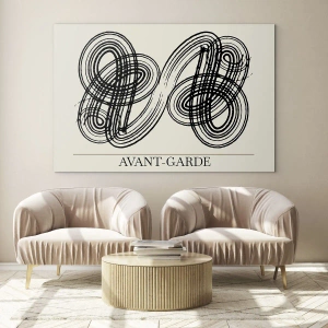 Cuadro sobre vidrio - Impresiones sobre Vidrio - Bucles y líneas vanguardistas negras sobre un fondo claro - 70x50cm - Salió espontáneamente - Decoración de pared moderna para salón y dormitorio ARTTOR