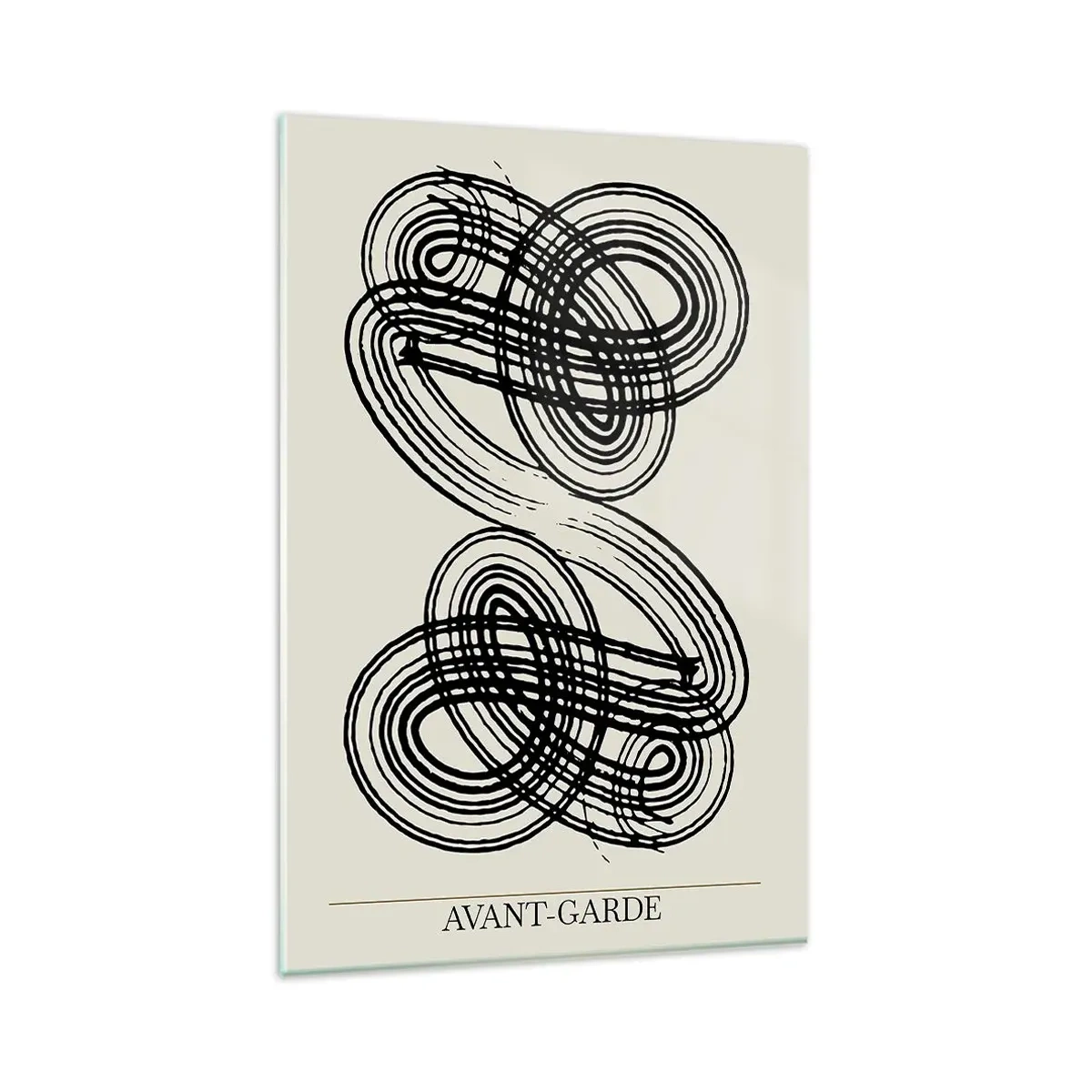 Cuadro sobre vidrio - Impresiones sobre Vidrio - Líneas negras abstractas sobre fondo claro en estilo vanguardista. - 80x120cm - Salió espontáneamente - Decoración de pared moderna para salón y dormitorio ARTTOR