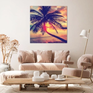 Cuadro sobre lienzo - Impresión de Imagen - Puesta de sol con una palmera sobre una orilla tranquila - 120x80cm - Atardecer bajo las palmeras - Decoración de pared moderna para salón y dormitorio ARTTOR
