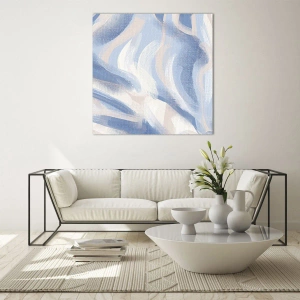 Cuadro sobre vidrio - Impresiones sobre Vidrio - Trazos abstractos en azul, blanco y beige en forma ondulada. - 100x70cm - Ondas azules - Decoración de pared moderna para salón y dormitorio ARTTOR