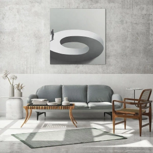 Cuadro sobre vidrio - Impresiones sobre Vidrio - Un hombre sobre una estructura gris y abstracta. - 120x50cm - Ser sabio no es una labor sencilla - Decoración de pared moderna para salón y dormitorio ARTTOR