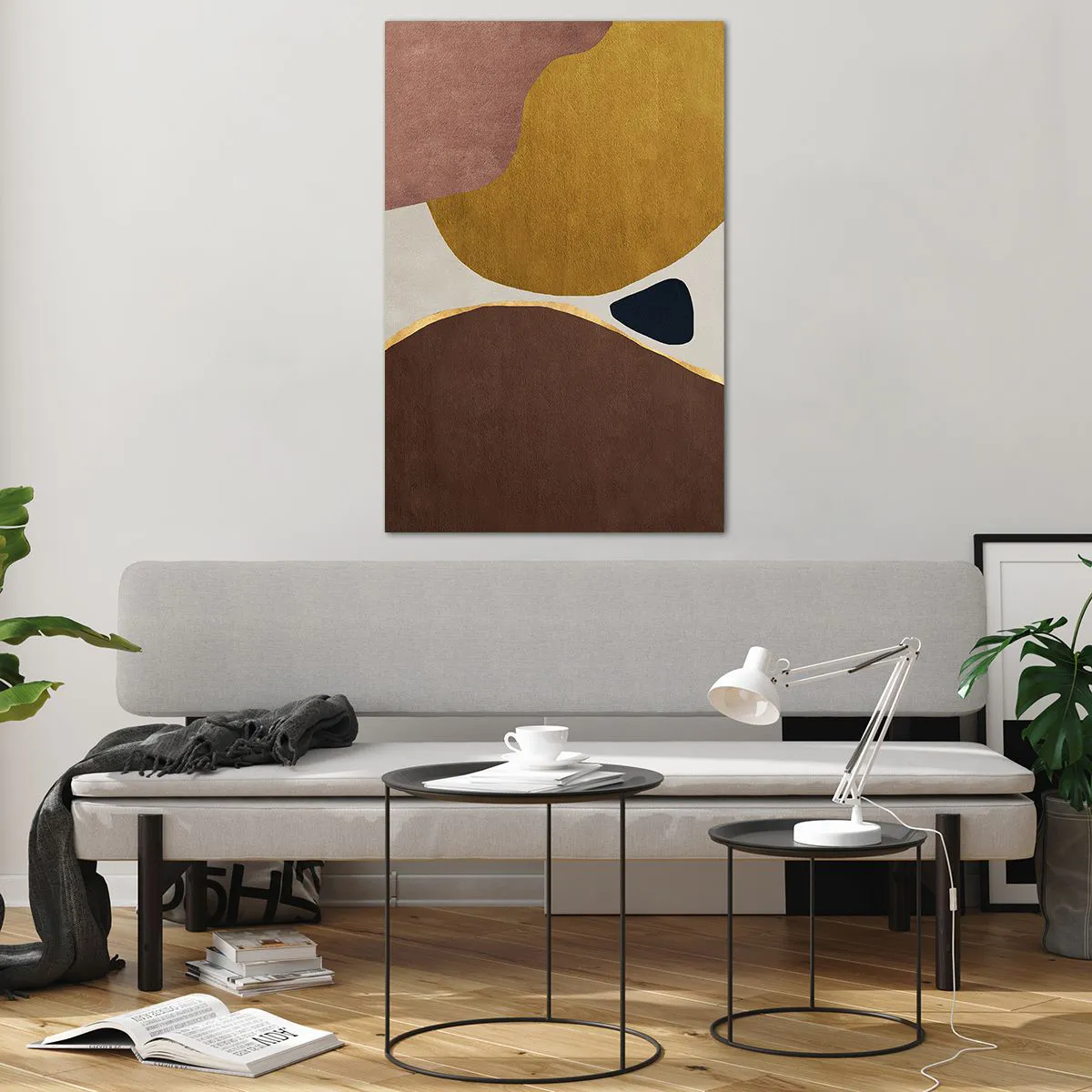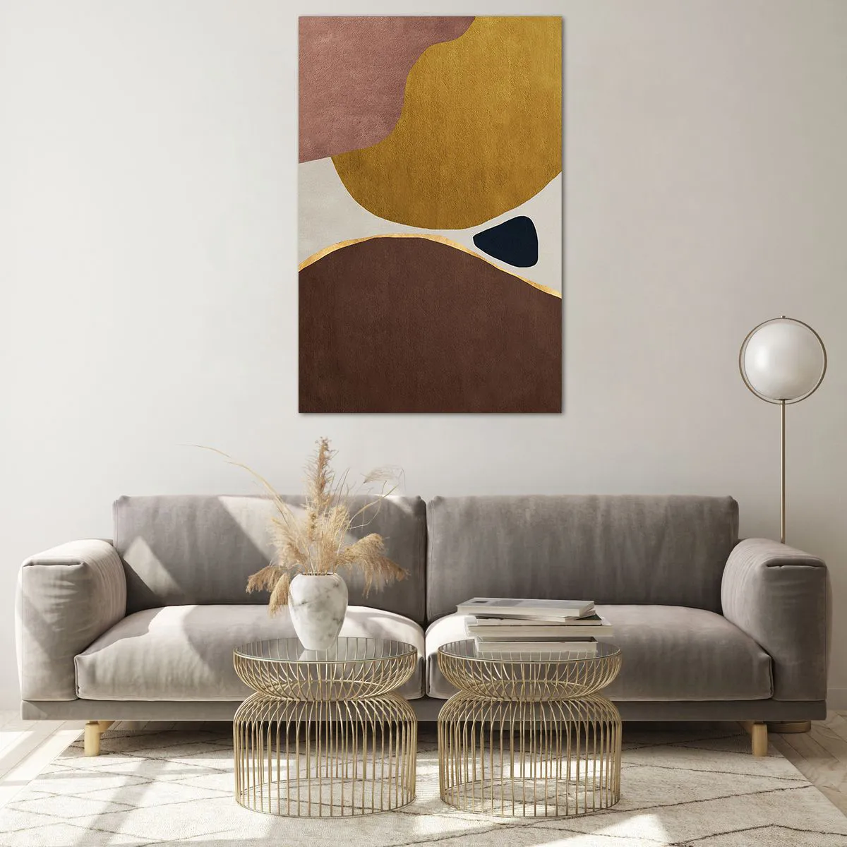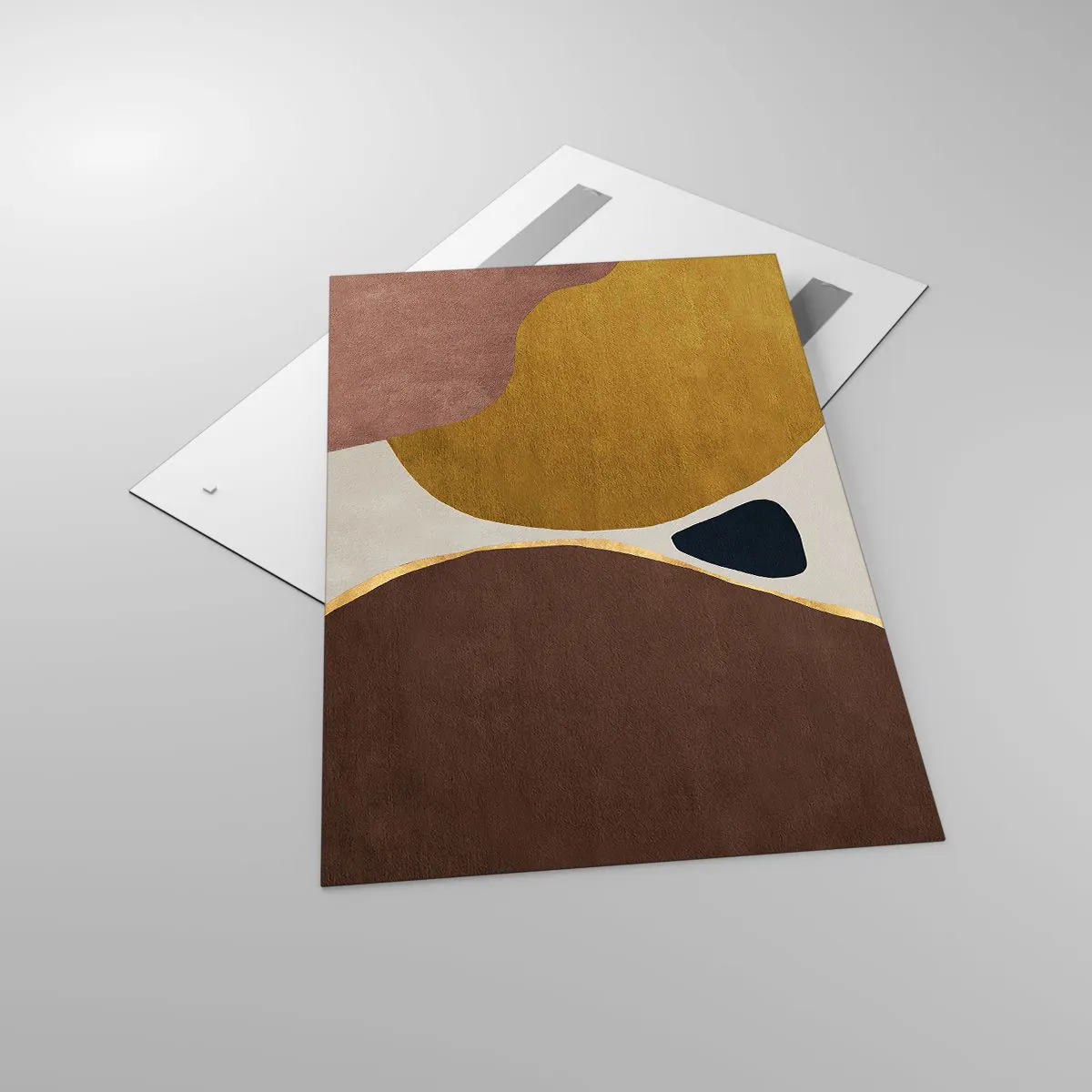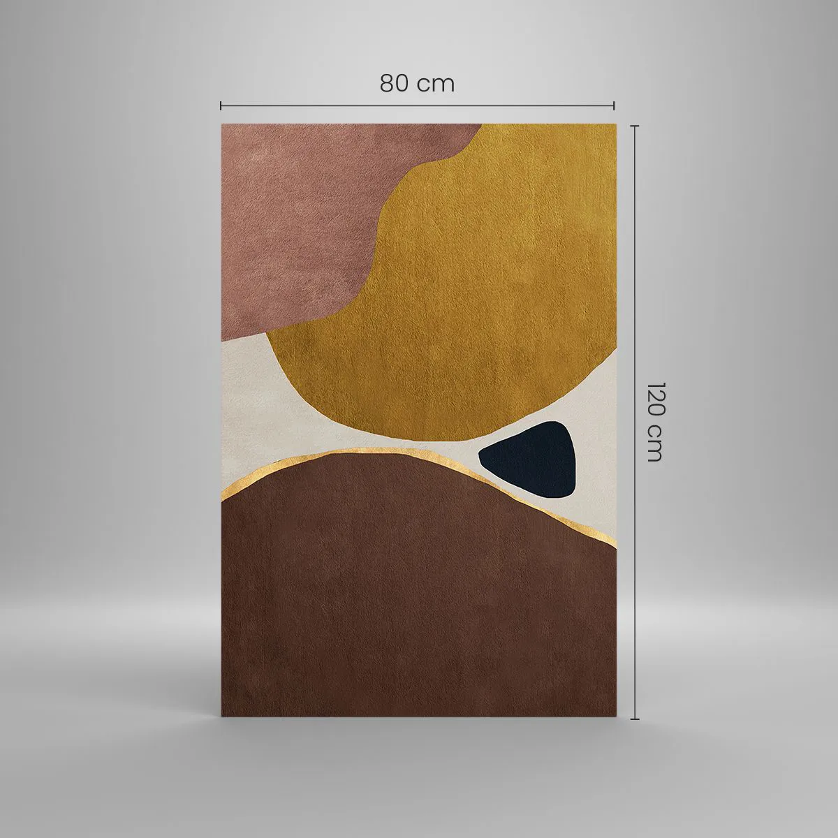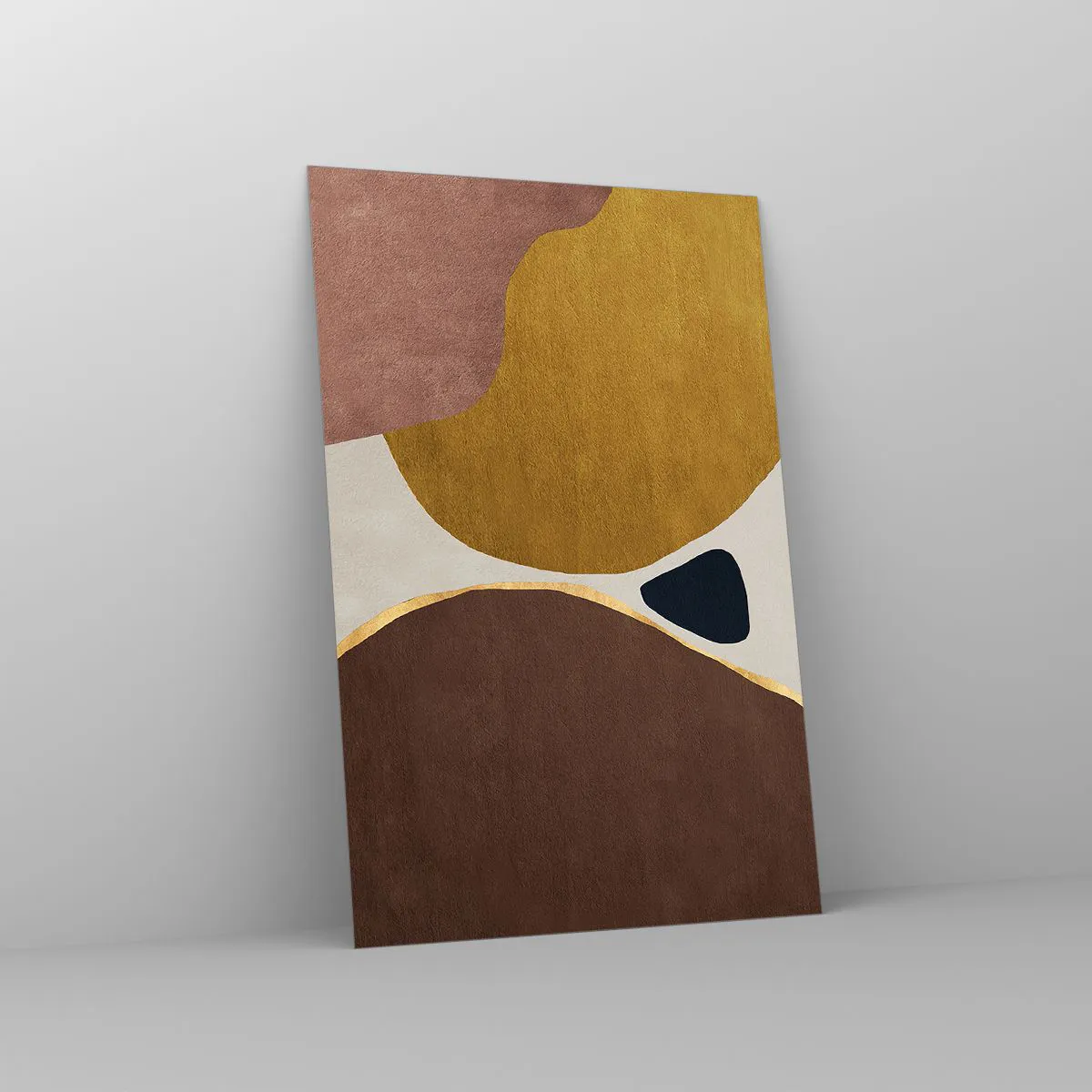Cuadro sobre vidrio - Impresiones sobre Vidrio - Una composición abstracta con formas geométricas en colores cálidos. - 80x120cm - Abstracción - un lugar en el espacio - Decoración de pared moderna para salón y dormitorio ARTTOR