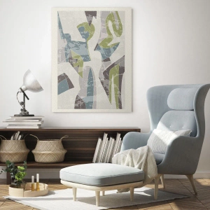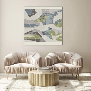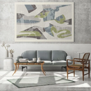 - Una composición abstracta de formas geométricas en tonos verdes, azules y grises. Un motivo moderno y elegante, perfecto para una sala de estar, un dormitorio o una oficina.