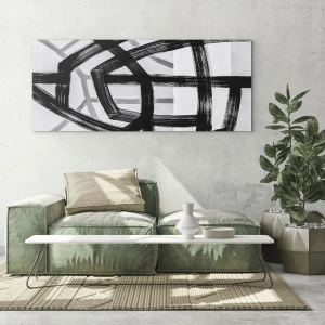 Cuadro sobre vidrio - Impresiones sobre Vidrio - Líneas abstractas en blanco y negro que se cruzan sobre un fondo claro - 70x100cm - Construir profundidad - Decoración de pared moderna para salón y dormitorio ARTTOR