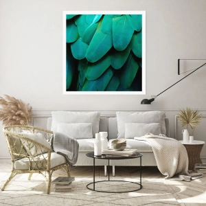 Póster - Primer plano de las plumas verdes de un pájaro exótico. - 50x70cm - La precisión de la naturaleza - Decoración de pared moderna para salón y dormitorio ARTTOR