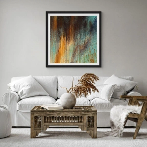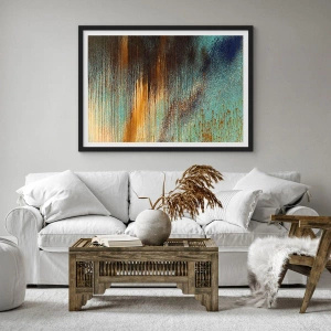 Póster en marco negro - Una composición abstracta de pinceladas doradas y azules. - 50x70cm - Una composición colorista no accidental - Decoración de pared moderna para salón y dormitorio ARTTOR