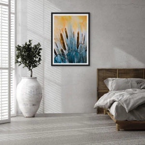 Póster en marco negro - Cañas pintorescas bajo los rayos del sol - 70x50cm - El frío del agua, el calor del sol - Decoración de pared moderna para salón y dormitorio ARTTOR