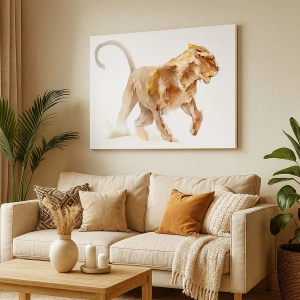 Cuadro sobre lienzo - Impresión de Imagen - Una leona corriendo en una interpretación artística - 70x50cm - Gracia salvaje - Decoración de pared moderna para salón y dormitorio ARTTOR