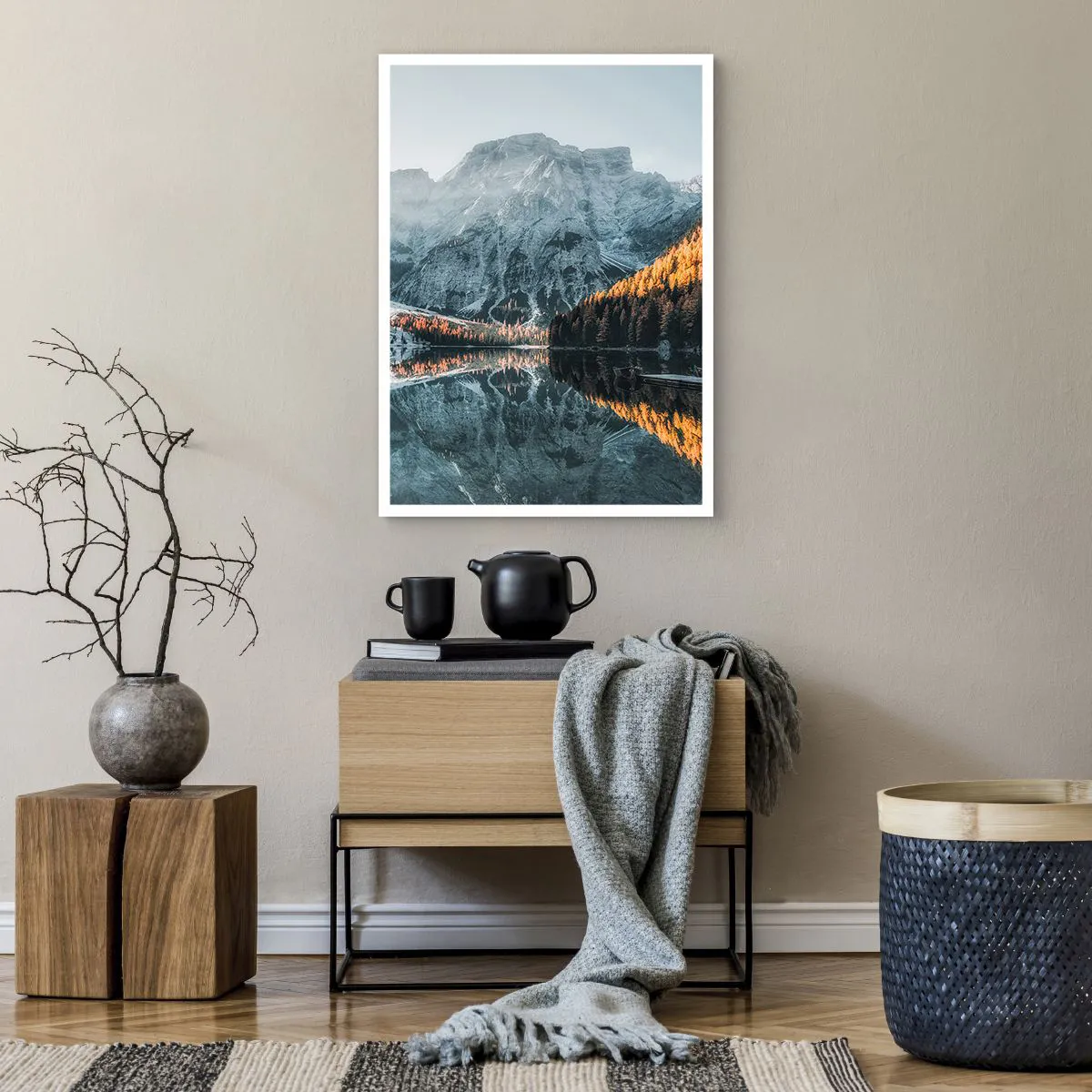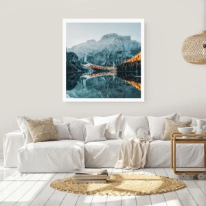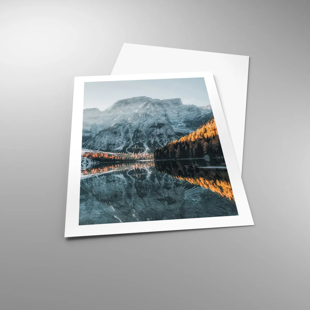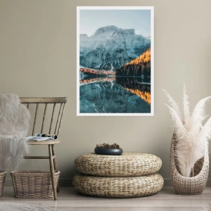 Póster - Paisaje de montaña reflejado en el lago al atardecer - 50x70cm - Paisaje en el espejo - Decoración de pared moderna para salón y dormitorio ARTTOR