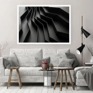 Póster - Abstracción en blanco y negro con estructuras geométricas. - 100x70cm - Orden espacial - Decoración de pared moderna para salón y dormitorio ARTTOR