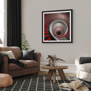 Póster en marco negro - Escalera de caracol con pasamanos rojos en perspectiva dinámica. - 70x50cm - Juegos arquitectónicos - Decoración de pared moderna para salón y dormitorio ARTTOR