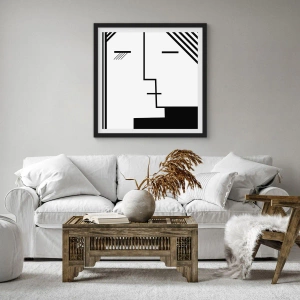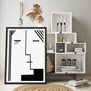 Póster en marco negro - Un rostro minimalista y abstracto en estilo blanco y negro. - 50x70cm - Solo un beso - Decoración de pared moderna para salón y dormitorio ARTTOR