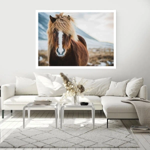 Póster - Caballo islandés frente a un paisaje montañoso - 100x70cm - ¿Puedes sentir la libertad? - Decoración de pared moderna para salón y dormitorio ARTTOR