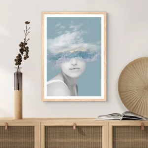 Póster en marco roble claro - Con la cabeza en las nubes - 40x40 cm